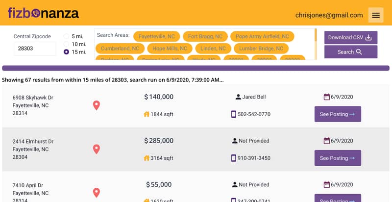 This is a tool we built to let you quickly download a list of all FSBOs in your market, complete with phone number and mailing address.