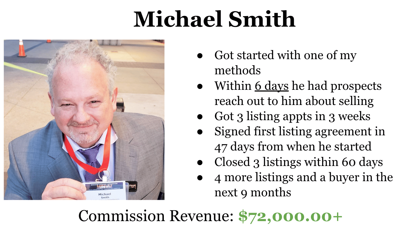 Result: He cashed $72,000.00+ in commissions after implementing and running just ONE of my "Core 4 Listing Plays"...