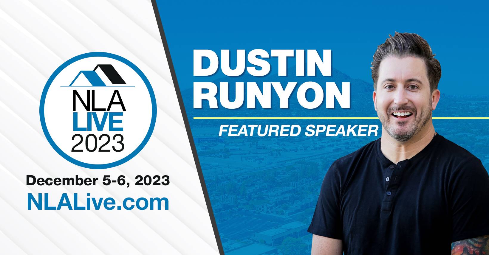 Today we are proud to announce another amazing speaker for NLA Live 2023: Dustin Runyon. Dustin is a Real Estate Team Owner, Developer, Speaker, Coach and Connection Specialist. Join us for an inspiring session from Dustin as he shares how his vision and mission helped him construct one of the top-producing real estate teams in the country. You'll leave Dustin's session feeling both empowered and inspired!
