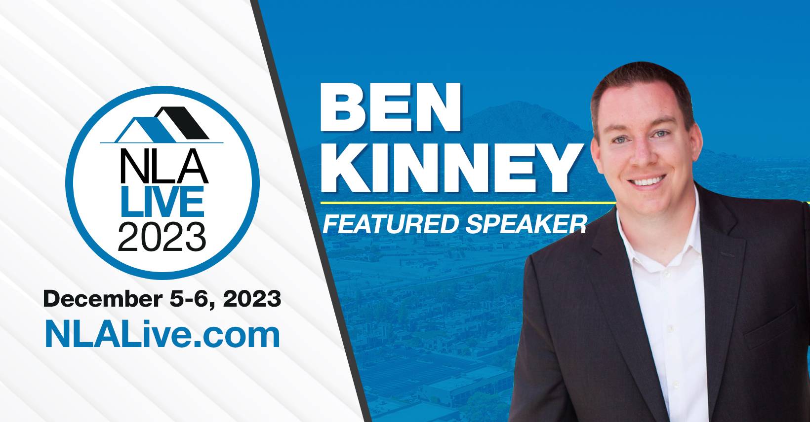 We are proud to announce that Ben Kinney will be joining us on December 5th and 6th in Scottsdale, AZ for NLA Live!! Ben is one of the 100 most influential people in our industry (per Inman News) and is an incredibly sought-after speaker.