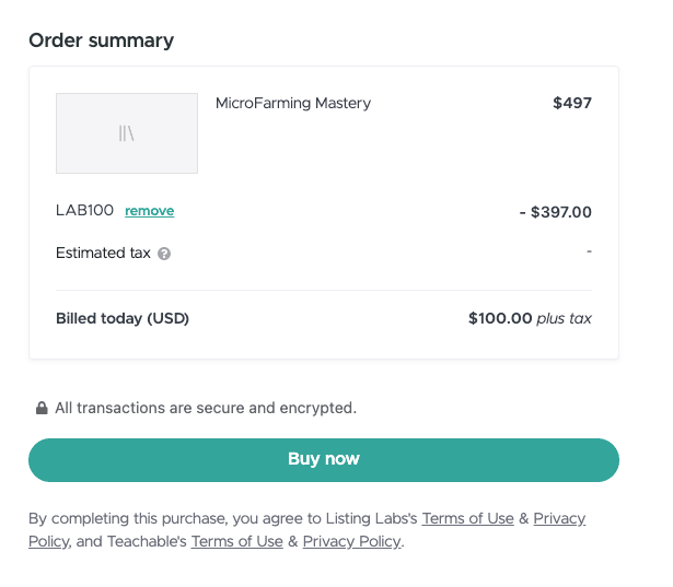 Make sure to enter the coupon code LAB100 in the coupon box: