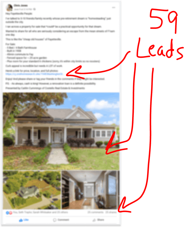 Recently, I posted a "facebook post" to my personal page that brought in 59 client leads, including a $1.2M buyer.