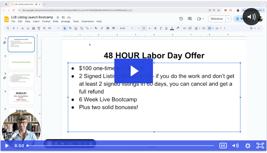 | I just recorded a short 7 minute video that shows you everything you'll get in my Labor Day offer! This is only available for 48 HOURS... so please watch now and decide if you want this: You're going to get $4,394 in real-world value for just $100.. (As you'll see in the video, that isn't "fake internet value", but actual real value you'd be paying for the listing-getting resources elsewhere) If you want to quickly get more listings, then please don't miss out on this. Plus I guarantee you 2 signed listings in 60 days or less, if you do the work and show proof of work! Click HERE To Get The Labor Day Sale Details The 48 hour clock expires tomorrow (Wednesday) mid-day, so please don't delay watching the short 7 minute and getting all the details. Let's Get Listings! CEO / Founder |